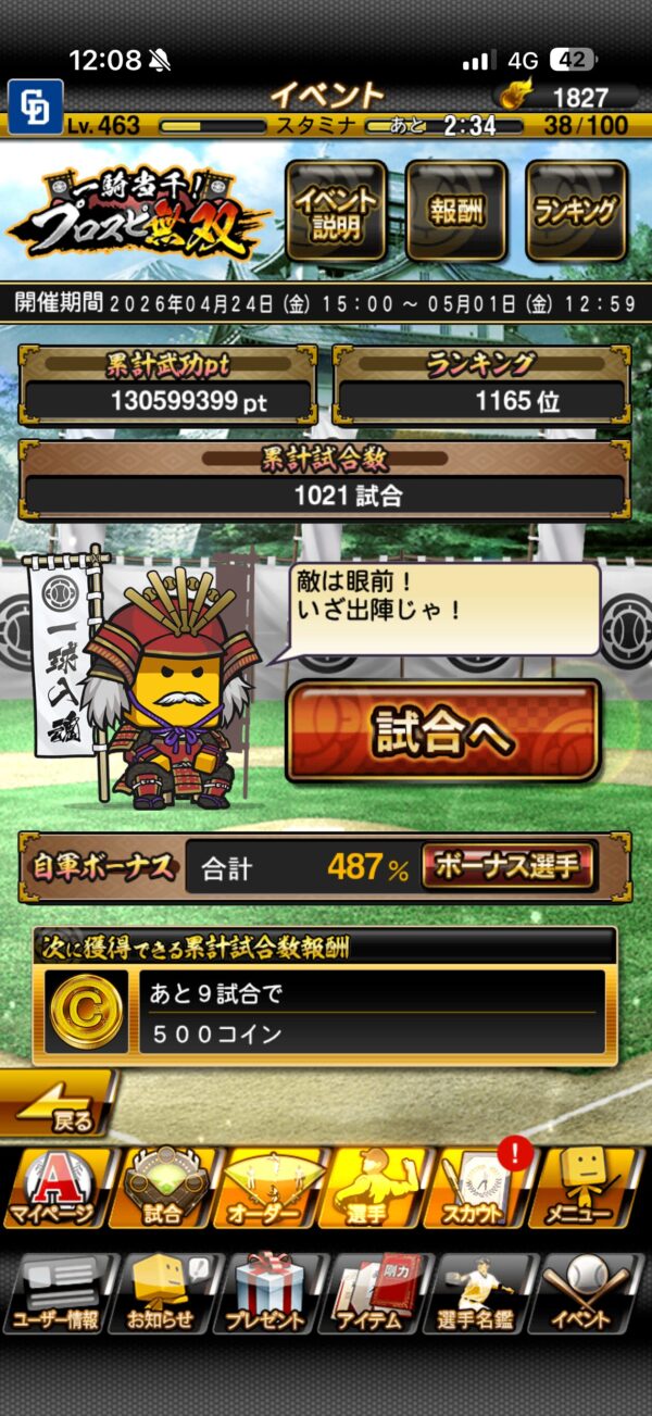 1000試合やってる時点で250エナジーじゃ足りないじゃん